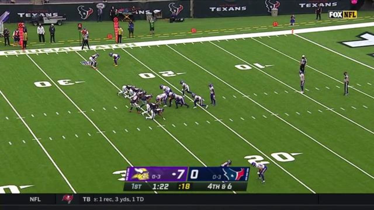 Minnesota Vikings running back Mike Boone jars ball from Houston Texans wide receiver DeAndre Carter for key special teams turnover.
